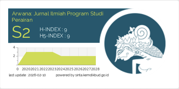 Arwana: Jurnal Ilmiah Program Studi Perairan is a terakreditasi Sinta 2 journal (Number 10/C/C3/DT.05.00/2025) published by the Department of Aquaculture, Faculty of Agriculture, Almuslim University, Bireuen Aceh. Articles published in this journal are the results of research by lecturers and students in the field of Aquaculture and Fisheries. Arwana Journal is an article in the form of research results, and conceptual articles covering fisheries science, namely: Aquaculture, Fisheries Resources, Fisheries Socio-Economics, Fisheries Technology, Fisheries and Marine Biology. This journal is published in May and November each year. Every journal published goes through a double-blind review process in the process of reviewing an article to be presented where an article is assessed by two reviewers who do not know the identity of the author.